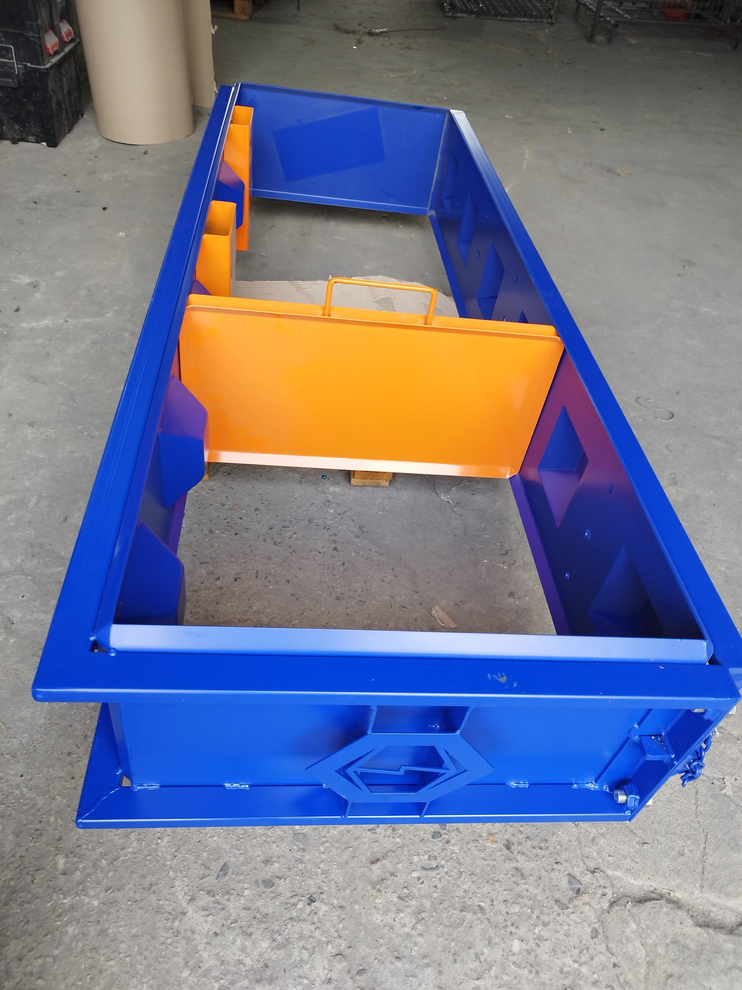 | Hauptform 150 × 50 × 50 cm | Hochwertiger, gehärteter Stahl, pulverbeschichtet (RAL Blau) – maximale Lebensdauer & leichte Reinigung |